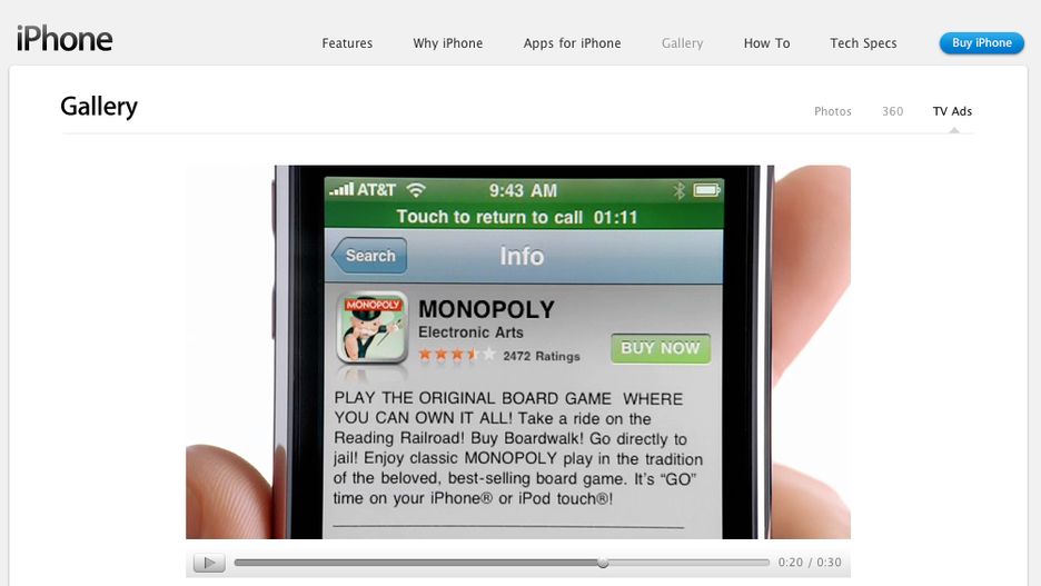 Obie reklamy są konkretne, proste i przedstawiają możliwości iPhone'a w codziennych sytuacjach. W pierwszym filmie widzimy, jak użytkownik iPhone'a próbuje wykonać połączenie, ale od razu zostaje odesłany w stan oczekiwania. Żeby nie marnować czasu sprawdza maila, płaci rachunki, kupuje w App Store grę Monopoly i .... spokojnie zaczyna w nią grać. Ciekawe, czy zdążył wybudować hotele, zanim się dodzwonił ;) Oto wielozadaniowość wedłu Apple.