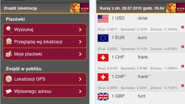 Alior Bank udostępnił specjalną aplikację bankową dla użytkowników urządzeń iPhone. Aplikacja umożliwia m.in. znalezienie najbliższej placówki lub bankomatu Alior Banku.