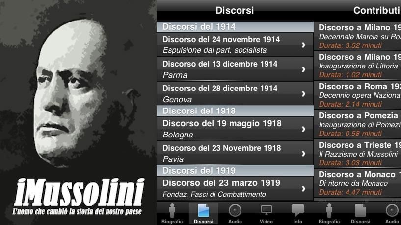 Po tym jak do App Store trafiło pełne tłumaczenie książki Mein Kampf pora iść dalej. Kilka dni temu cenzorzy Apple zaakceptowali aplikację iMussolini zawierającą ponad 120 przemówień faszystowskiego przywódcy w wersji audio oraz wideo. W ciągu dwóch dni od daty premiery, produkt trafił na trzecie miejsce najlepiej sprzedających się aplikacji. Całość już teraz odbija się szerokim echem w całych Włoszech.