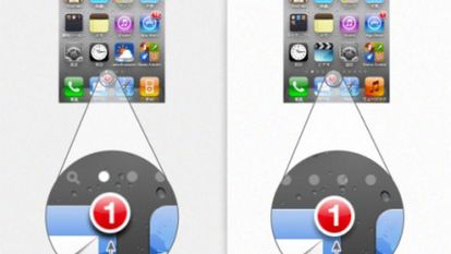 Teraz najlepsze, a mianowicie odległości pomiędzy ikonami. W przypadku środkowych ikon odległość względem iOS 4 zwiększyła się o dwa piksele. W kwestii odstępów między pierwszą a drugą i trzecią a czwartą ikoną zmiany się nie pojawiły, jednak odsunięto czwartą ikonę od rantu o dwa piksele, aby nie było nierówności.