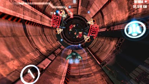 Im dalej, tym tunel staje się bardziej zawiły i usiany przeszkodami. Prawdziwa zabawa zaczyna się około dziesiątego kilometra, czyli po mniej więcej dwóch minutach gry. Wtedy trzeba się naprawdę skupić na drodze. Do tego trudniej zbiera się zasoby, a policja czyha co chwilę. Dla ułatwienia przed każdą rozgrywką można ulepszyć bolid. Niestety wszelkie modyfikacje się zużywają (tarcza, przyciąganie kulek oraz dopalacz) i każda z nich może być wielokrotnie rozwijana. W przyszłości ma zostać wprowadzony garaż umożliwiający większą ingerencję w bolid. Tytuł współpracuje z Open Feint.