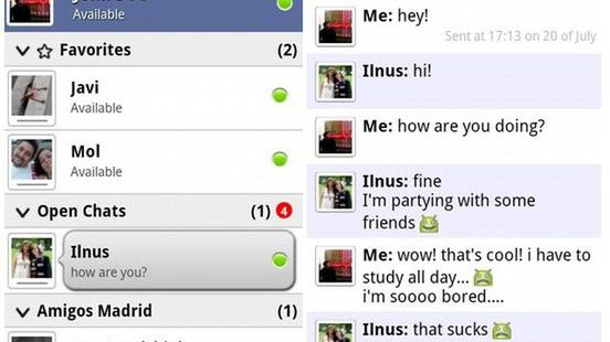 Interfejs. Twórcy całkowicie odświeżyli design programu. Pojawiło się wiele dodatkowych opcji, trochę pozmieniano i dodano. Pojawił się pasek, który szybko przekieruje nas do facebookowych powiadomień oraz wdrożono obsługę wideo w formacie H.264, dzięki czemu również posiadacze Androidów mogą oglądać filmy swoich znajomych bezpośrednio w aplikacji.