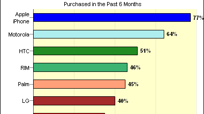 Co jakiś czas przeprowadzane są statystyki odnośnie tego, jak bardzo użytkownicy lubią producenta swojego telefonu. Odkąd iPhone zawitał na amerykański rynek, zawsze wygrywa w tego typu sondażach. Aż 77% posiadaczy komórki od Apple jest zadowolona ze swojego nabytku. Amerykanie najgorzej oceniają Samsunga, bo jedynie 35% posiadaczy telefonów tego producenta jest zadowolona ze swojego wyboru.