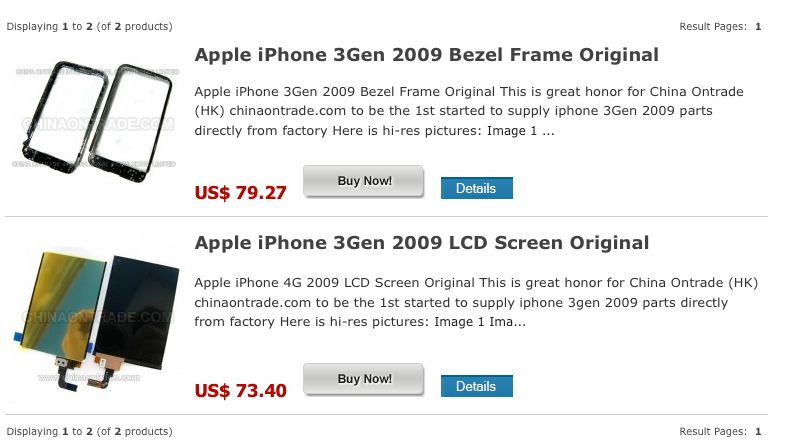 Wholesaler China Ontrade.com zamieścił w swoim sklepie internetowym zaledwie 2 części z iPhone'a 3G - wyświetlacz LCD (a nie OLED, jak spekulowano wcześniej) oraz ramkę.