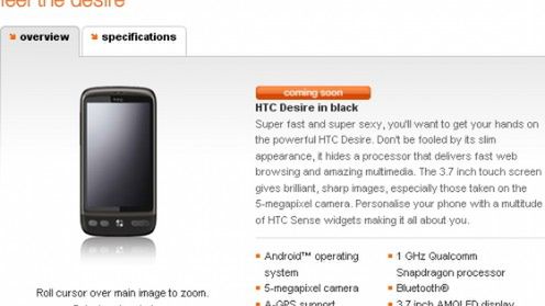 Czarny HTC Desire trafia na stronę brytyjskiego Orange