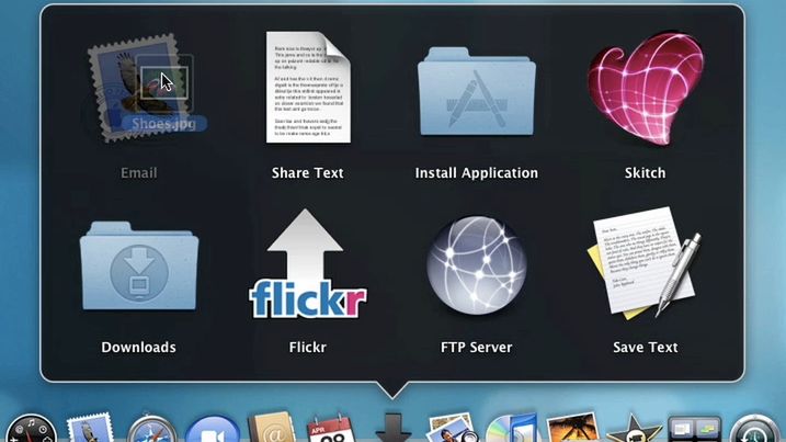 Wystarczy przeciągnąć dany obiekt na ikonę w Docku, a następnie z "tacki" wybrać odpowiednią pozycję. Chcemy skomponować wiadomość ze zdjęciem? Przenosimy więc zdjęcie na ikonę "Email". Chcesz dodać zdjęcie do Flickra? Przenieś je na ikonę Flickra. Podobnie sytuacja wygląda z innymi narzędziami. Z racji udostępnienia API przez twórcę Dropzone spodziewać się można stałego zwiększania liczby obsługiwanych aplikacji i możliwości.