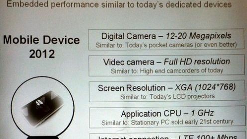 Dane te wydają się być wzięte z księżyca, ale po zastanowieniu, do 2012 cel może zostać osiągnięty. Obecne smartfony już opierają się o ponad 600-megahercowe procesory, a Samsung wydał już telefon z 10-megapikselowym aparatem.