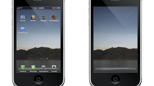 W skład tematu wchodzi tapeta, na której znajdziemy również odpowiednio spreparowany dock. Wystarczy ustawić ściągnięty obrazek jako tło ikonek. Aby jednak w pełni uzyskać efekt podobny do zrzutki powyżej, należy zaopatrzyć się w aplikację Shrink i pomniejszyć odpowiednio ikony. Na samym końcu należy aktywować w WinterBoard opcję Transparent Dock, abyśmy widzieli jedynie ten, który umieszczony jest na tapecie.