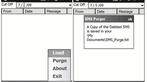 W przypadku systemu operacyjnego Windows Mobile dostępne jest narzędzie SMS Purger. Aplikacja działa w następujący sposób: