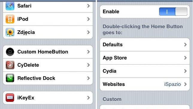 Wspomniany dodatek umożliwia przypisanie praktycznie wszystkiego do tej reakcji. Masz możliwość wybrania konkretnej aplikacji (z AppStore lub Cydii), która będzie uruchamiana po dwukrotnym wciśnięciu Home lub możesz wpisać link, do którego poprowadzi Cię twój magiczny przycisk. To wszystko konfigurujesz bezpośrednio w ustawieniach.