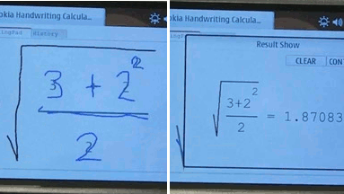 Zadbają o to programiści Nokia Beta Labs. Opracowali oni program Nokia Handwriting Calculator. Aplikacja rozpoznaje znaki wprowadzone odręcznie, za pomocą rysika, i zamienia je w formuły matematyczne. Od razu oblicza przy tym ich wartość. W praktyce jest więc to typowy, choć niezwykły, kalkulator.