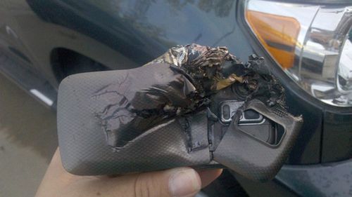 Corey Hurst, jeden z czytelników Gizmodo, podzielił się z blogiem swoją dosyć nietypową historią. Amerykanin wracał z siłowni i miał pechowy telefon w kieszeni spodni. Gdy wsiadł do samochodu, komórka wyślizgnęła się i wpadła pod siedzenie kierowcy. Corey próbował sięgnąć telefon. Po nieudanej próbie wysiadł z auta, postanowił przestawić siedzenie i sięgnąć po komórkę. Przesuwając powoli fotel usłyszał skrzypienie, po czym komórka wybuchła oblewając jego twarz chemikaliami i drobinkami (jak uważa autor) wyświetlacza.