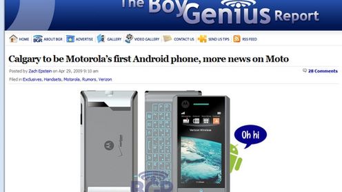 Według Boy Geniusa pierwsze telefony Motoroli z Androidem są tuż za rogiem. Co więcej mówi się, że pierwszy telefon tego typu, Calgary, będzie oferował nie tylko nowy system operacyjny, ale i pełną klawiaturę QWERTY.