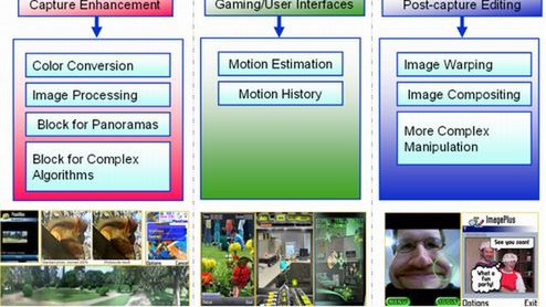 - pracę z filmami (detekcja ruchu, analiza historii ruchu; przydatne dla producentów gier),