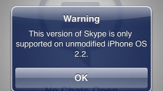 Okazuje się, że jest to jednak reakcja na ogromną falę zgłoszonych raportów na temat rzekomo niedziałającego Skype’a - jak nie trudno się domyślić, problem dotyczył właśnie posiadaczy odblokowanych telefonów. Pomimo jednak pojawiającego się komunikatu wszystko działa jak należy (pod warunkiem, że mamy zainstalowany Mobile Substrate z Cydii).
