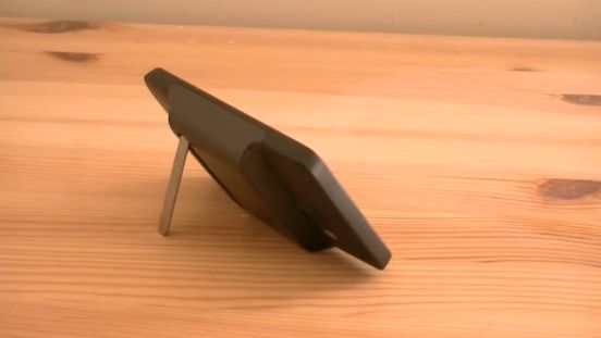 Po jej zamontowaniu telefon zaczyna niepokojąco przypominać sprzęt stacjonarny, zamiast mobilnego. Zauważyli to chyba sami inżynierowie HTC i zamiast z tym walczyć, postanowili dołączyć do baterii składaną nóżkę.
