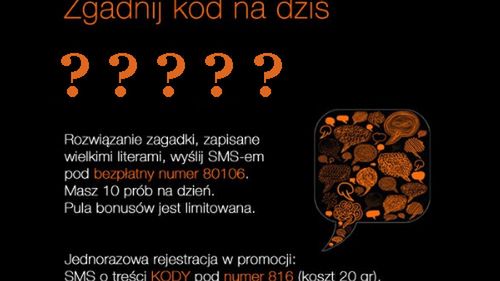 Należy oczywiście wysłać go pod bezpłatny numer 80106 po wcześniejszej rejestracji w promocji (SMS o treści KODY na numer 816 - koszt: 20 groszy).