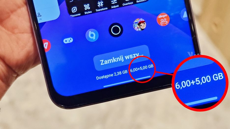 Problem w tym, że w obu trybach - 6 GB RAM oraz 6 + 5 GB RAM - realme 8i wczytał z pamięci operacyjnej tyle samo aplikacji. Możecie to zobaczyć poniżej.