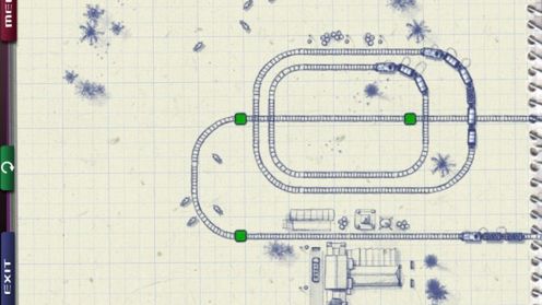 Niczym na ostatniej stronie szkolnego zeszytu[/h3]Nazwa gry Paper Train nie wzięła się znikąd. Otóż wszystkie plansze są ukazane przy pomocy charakterystycznej grafiki, która przedstawia (klasyczną jak z zeszytu) kartkę w kratkę. Na niej, w widoku z góry,ktoś narysował niebieskim długopisem domy, baraki, drzewa, zwierzęta i przede wszystkim tory. Po tych ostatnich suną pociągi, a zadaniem gracza jest sprawne manewrowanie semaforami, tak by każdy pociąg dotarł do celu, czyli po prostu wydostał się z planszy.