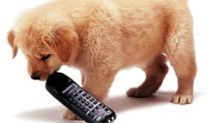 Pies plujący telefonem...
