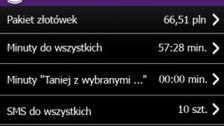 - Moje konto - informacje o stanie konta i wybranej taryfie; kliknięcie w jakąś pozycję spowoduje wyświetlenie szczegółowych informacji;