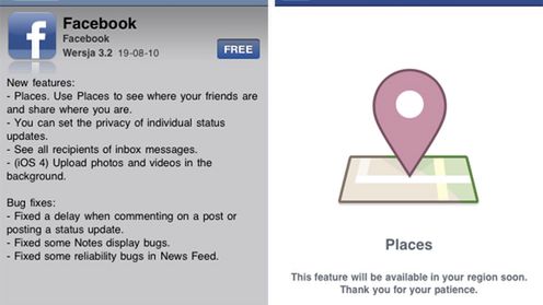 Jak już zapewne zorientowaliście się po obrazku tytułowym, Places nie działa na razie w naszym kraju, ale zgodnie z obietnicą producenta kolejne państwa będą dodawane stopniowo. Places pozwoli użytkownikowi wrzucić do bazy informację o tym, gdzie w danym momencie się znajduje, oraz dowiedzieć się, w jakich miejscach obecność zaznaczyli inni jego znajomi.
