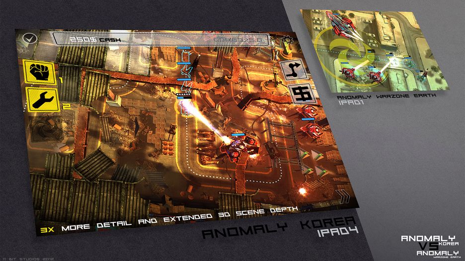 Od chwili gdy wydaliśmy Anomaly Warzone Earth, minęło trochę czasu. Okazało się, że rok w kategoriach urządzeń mobilnych to prawie jak 10 lat w kategorii konsol. Po premierze iPad 2 przekonaliśmy się, że wydajnością procesora graficznego dosłownie miażdży poprzednika. Kolejne generacje tabletów były jeszcze szybsze. Postanowiliśmy wykorzystać to w pracach nad naszą kolejną produkcją - Anomaly Korea.