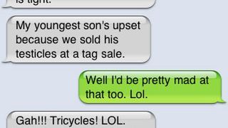 - Najmłodszy syn jest smutny ponieważ sprzedaliśmy jego jądra na wyprzedaży garażowej.