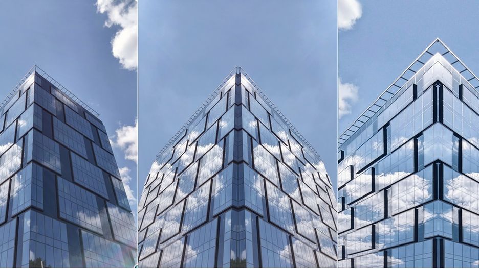 Biurowiec jest położony blisko ruchliwego skrzyżowania oraz otoczony zagrodzonymi budynkami, więc uchwycenie go w niebanalnej formie nie było możliwe. Postanowiłem zatem sprawdzić, czy uda mi się wyciągnąć coś z jednego z wielu niezbyt imponujących kadrów jakie zrobiłem tego dnia, uwypuklając element szklanej konstrukcji utrzymanej w duchu rendera graficznego.