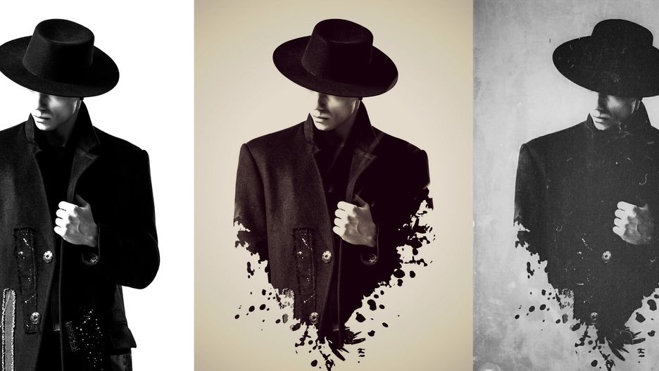 Następnie na sylwetkę fotografowanego nałożyłem zdjęcie z uprzednio stworzonej plamy w trybie przenikania warstw Rozjaśniania tzw. Lighten, który idealnie sprawdza się przy nakładaniu na siebie zdjęć i elementów graficznych osadzonych na jasnym tle. Po nałożeniu zdjęcia z plamą na kadr z modelem wystarczyło tylko wygumkować/zetrzeć odpowiednią część warstwy składającej się na pierwszy plan.