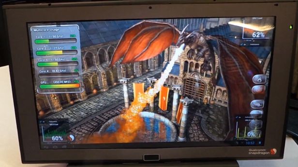 W strefie prezentacyjnej dostępne były dwa tablety referencyjne ze Snapdragonem 800 i GPU Adreno 330. Na urządzeniach zainstalowano wymagające gry oraz aplikacje pokazujące, jak działają poszczególne rdzenie procesora. Niestety, nie pozwolono mi pobrać żadnego benchmarku, ale to nic. To właśnie gry najlepiej nadają się do testów.