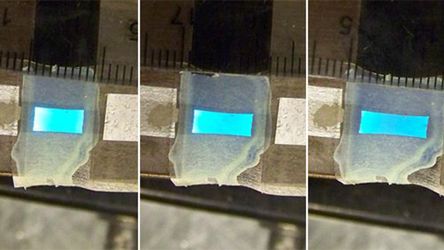 Udało im się stworzyć prototyp ekranu OLED, którego powierzchnię prosto można zwiększyć o 45%. Urządzenie nie jest jednak w pełni funkcjonalne - na razie, jak widać na zdjęciach, wyświetla jedynie niebieski kolor. Pracownicy uniwersytetu chwalą się natomiast, że wyświetlacz ich produkcji jest pierwszym, którego wszystkie komponenty (elektrody, półprzewodniki, dielektryki) da się w pełni rozciągnąć.
