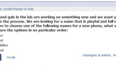 W ankiecie jaką umieścił na Facebooku tajwański producent smartfonów, każdy posiadacz konta może zagłosować na jedną z czterech proponowanych nazw, a tym samym stać się "ojcem chrzestnym" nowego telefonu HTC. Do wyboru są nazwy takie jak : Jovi, Zeal, Wildfire oraz Festi.