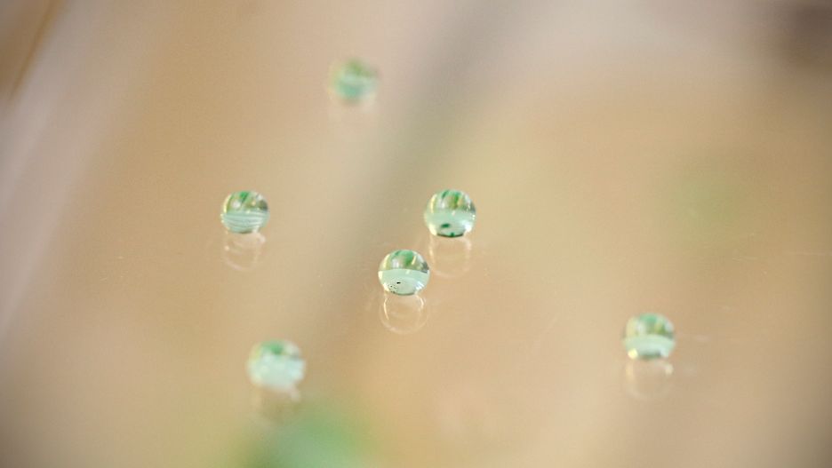 Badacze z Oak Ridge National Laboratory wynaleźli jakiś czas temu powłokę, która ma właściwości hydrofobowe. W ludzkim języku oznacza to tyle, że szkło pokryte taką warstwą będzie “odpychało” krople wody. W ten sposób, mokrą taflę szkła wystarczy lekko przechylić, aby stała się całkowicie sucha. Krople cieczy nie przylegają do niej, tylko ześlizgują się niczym małe, przezroczyste kulki.