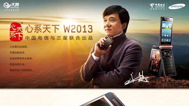 Premiera tego absurdalnie drogiego urządzenia odbyła się w połączeniu z charytatywnym koncertem, na którym pojawił się Jackie Chan. Na tym samym koncercie dostał on również w prezencie Samsunga SCH-W2013, w którego akcji promocyjnej wykorzystano wizerunek aktora. Wątpię jednak, aby przeniosło się na wzrost zainteresowania komórką...