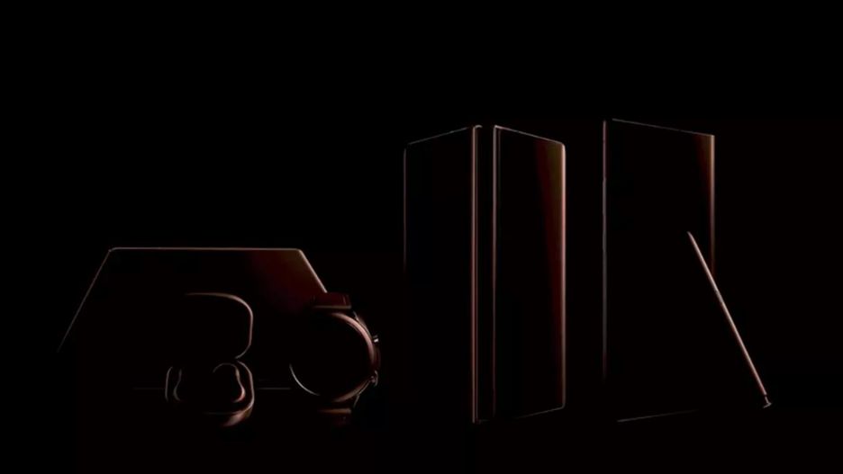 Na pierwszym planie widzimy Galaxy Tab S7, o niego opierają się Galaxy Buds Live oraz Galaxy Watch 3. Obok stoją prawdopodobne gwiazdy wieczoru, czyli Galaxy Note 20 i wyczekiwany następca Galaxy Fold.