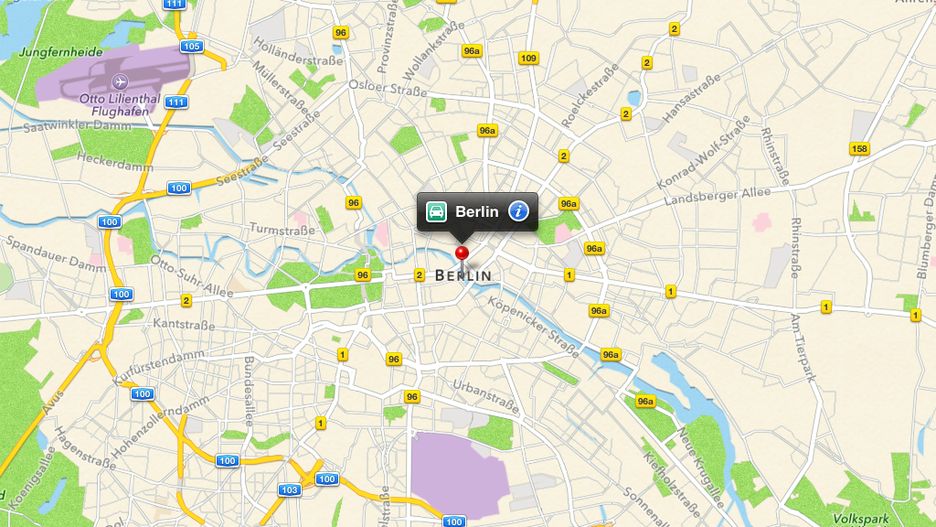 W smartfonach z Androidem dostępne są oczywiście Mapy Google. Problem z nimi jest taki, że można zapisać tylko potrzebny nam obszar (ograniczony rozmiarem). Takich map da się w pamięci telefonu utworzyć maksymalnie 6. Bez problemu można pobrać obszar całego Berlina (zajmuje ok. 27 MB), więc dopóki nie zamierzamy zgubić się w szczerym polu poza interesującym nas miastem, ta opcja powinna w zupełności wystarczyć do poruszania się po mieście. Gorzej z dojazdem z odległych polskich miast.