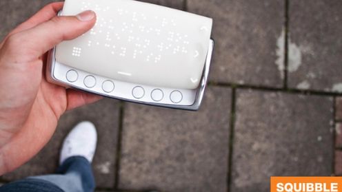 Squibble Portable Braille Interface, to urządzenie komunikujące się z komórką poprzez Bluetooth. Przekazywana treść SMS’a, prezentowana jest na „ekranie” wyświetlacza za pomocą 779 ruchomych głowic zakończonych silikonową czapeczką, które wysuwają się z powierzchni ekranu (zdjęcie poniżej). Głowice układają się w litery alfabetu Braile’a lub mogą tworzyć inne, łatwo rozpoznawalne symbole (np. symbol koperty, kiedy urządzenie odbierze wiadomość SMS). Każda z głowic może być podświetlona, co dodatkowo ułatwia odczytywanie wiadomości osobom niedowidzącym i tracącym zdolność widzenia, których wzrok reaguje jeszcze na światło. Urządzenie zapewnia również dźwiękowe powiadomienia (np. o przychodzącej wiadomości).