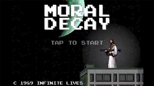 Panowie z Infinite Lives usiedli pewnego dnia przy stole konferencyjnym i w oparach dymu (bynajmniej nie z papierosów), wpadli na pomysł stworzenia gry Moral Decay. Styl całego projektu nawiązuje do klasycznych shooterów z side-scroolingiem. Gra wyróżniać się będzie postacią Jezusa, który powraca na Ziemię, aby stawić czoła kosmitom, szatanowi oraz japońskiej mafii. Popatrzcie zresztą sami.