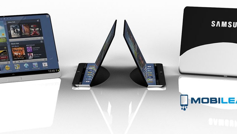 - Koncept elastycznego tabletu Samsunga: Jakiś czas temu Samsung złożył w amerykańskim urzędzie patentowym szkice przedstawiające dość niekonwencjonalny elastyczny tablet. Na ich podstawie redaktorzy serwisu MobiLeaks stworzyli widoczną powyżej koncepcyjną grafikę, która prezentują możliwy wygląd urządzenia. Nie wiadomo jednak, czy tego typu tablet kiedykolwiek ujrzy światło dzienne.