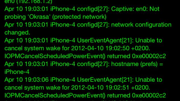 Jak informuje deweloper, WallpaperLog jest wyciągnięciem na wierzch danych na bieżąco zapisywanych w pliku system.log, zlokalizowanym w /private/var/log/. Zależnie od tego, ile rzeczy dzieje się w urządzeniu, tak szybko o nowe zdarzenia aktualizowana jest tapeta. Mnie niejednokrotnie zdarzyło się, że urządzenie dostało lekkiej zadyszki podczas używania WallpaperLog.