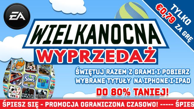 Z okazji świąt Wielkiejnocy firma EA przygotowała wielką wyprzedaż wybranych tytułów. Dzięki temu posiadacze iPadów i iPhone'ów mogą kupić ulubione tytuły nawet o 80% taniej.