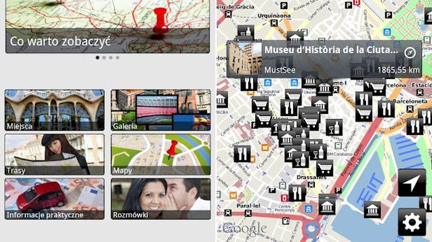 W aplikacji znajdują się różne dane, a także zróżnicowane pakiety treści lub narzędzia – zarówno bezpłatne, jak i płatne, przyporządkowane różnym państwom i miastom, a wśród nich: