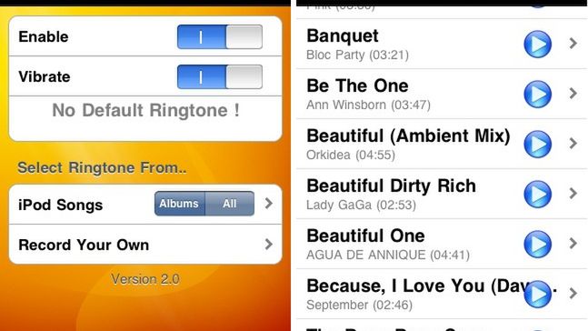 AnyRing umożliwia wybranie kilku, a nawet kilkunastu piosenek z biblioteki muzycznej iPhone'a, które w określonej przez nas kolejności będą odtwarzane, w razie przychodzącego, nowego połączenia. Przypuśćmy dzwoni Basia - leci Nothing Else Matters. Zaraz po Basi dzwoni Agnieszka, a jej połączeniu towarzyszy jakaś tam inna melodia. Aplikacja umożliwia również ustawienie, aby bez uprzedniego wyboru, piosenki były losowo odtwarzane podczas przychodzącego połączenia. Istnieje również opcja nagrania własnego utworu ;).